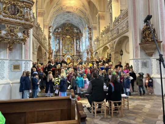 Gemeinsam singen, hören und Freude teilen… dieses wunderschöne Ereignis fand am Sonntag, 19. Oktober in einer vollen Stiftskirche Heilig Kreuz in Polling statt. Kinder der Grundschule Polling, ehemalige Kinder der Grundschule Polling, der Kinderchor, die Liedertankstelle und der Projektchor St. Nikolaus in Murnau haben mit viel Liebe das Kirchweihsingen möglich gemacht! Ein großer Dank geht an dieser Stelle an Herrn und Frau Walser, durch die dieses Projekt erst zustande kam!!! Die gewaltige Summe von €1900.- kommt dem Kinderhospiz Polling zugute. Vielen Dank an die zahlreichen Besucher und großzügigen Spender!