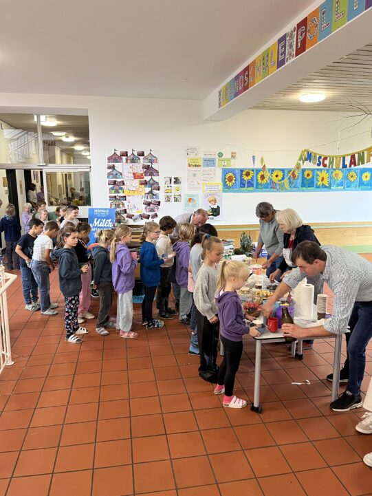 Der Weltschulmilchtag hat an unserer Schule stattgefunden! Die stellvertretende Kreisbäuerin Maria Lidl, stellvertretende Ortsbäuerin Maria Tafertshofer und ihre Helfer bauten ein Buffet mit Müsli, Obst und diversen Milchprodukten wie Joghurt und Quark auf.