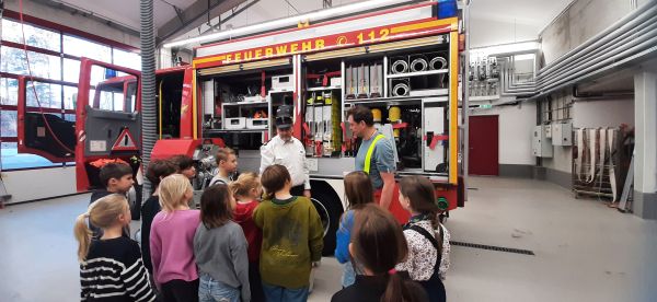 Die Klasse 2/3 tauschte das Klassenzimmer gegen die Feuerwache ein. Schon bei der Ankunft gab es viel zu staunen, denn das riesige Feuerwehrauto stand bereits für uns bereit. Es wurde alles ganz genau unter die Lupe genommen. Beeindruckend war auch die schwere Atemschutz-Ausrüstung, die bei einem Brand lebenswichtig ist. Es wurde das richtige Verhalten bei Feuer besprochen und wie man einen Notruf über die Nummer 112 absetzt und dabei die wichtigsten Fragen beantwortet. Es war ein lehrreicher Tag, an dem die Kinder viel über die mutige Arbeit bei der Feuerwehr erfahren durften. Vielen Dank an Herrn Neuner und sein Team!